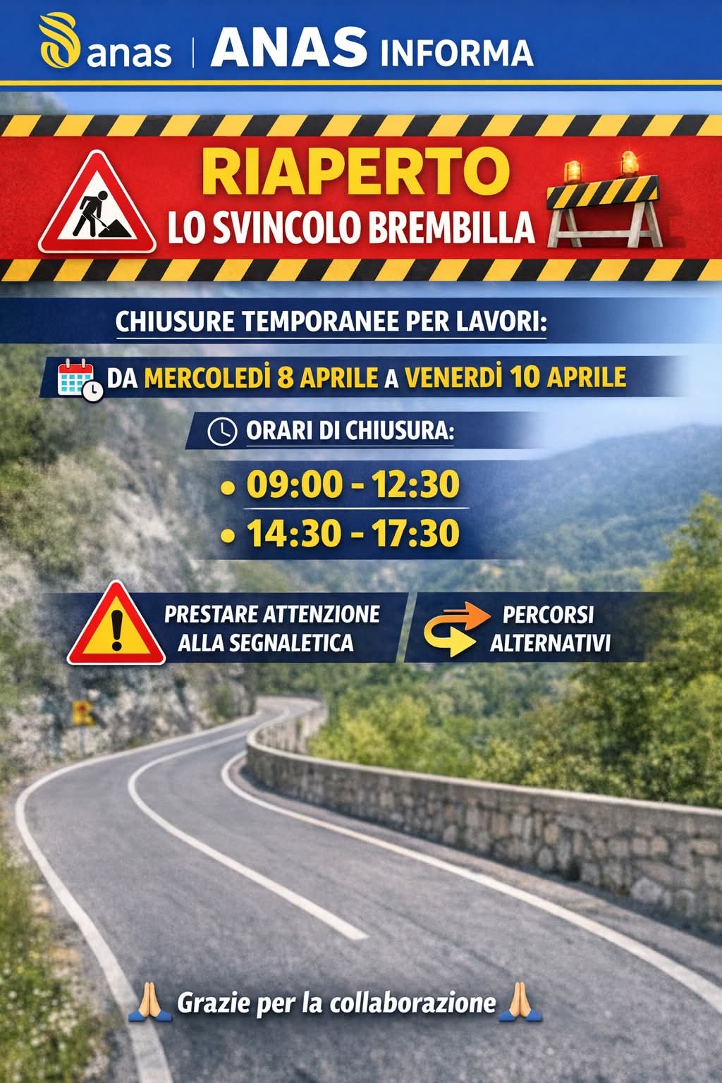 🚧 RIAPERTO lo svincolo da Zogno per Brembilla - oggi martedì 7 aprile dalle ore 18 🚧